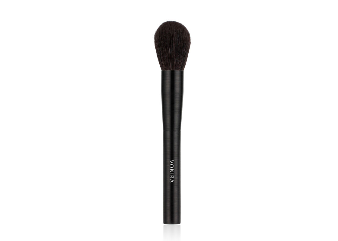 Carregar: Agite o pincel em seu pó (fixador, translúcido, blush ou bronzeador) e retire o excesso.